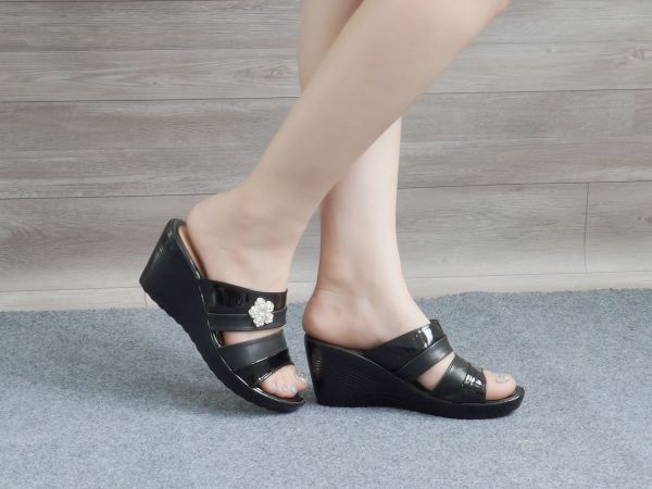 Dép nữ mã DE7FX368 với thiết kế 2 quai phối khóa hoa bạc sang trọng. Sản phẩm được làm từ chất liệu da tổng hợp mềm mại dễ bảo quản và dễ lau chùi cùng đế PU cao 7cm vừa sang vừa dễ di chuyển. Đường may chắc chắn và tinh xảo giúp sản phẩm luôn bền đẹp theo thời gian, form chuẩn mang lại cảm giác thoải mái khi sử dụng. Ngoài ra sản phẩm có thể kết hợp với nhiều phong cách, trang phục khác nhau